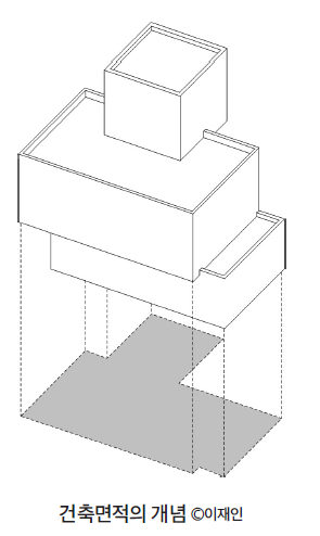반면, 건축면적은 지상층 부분의 건축물 전체에 대한 수평투영면적이다