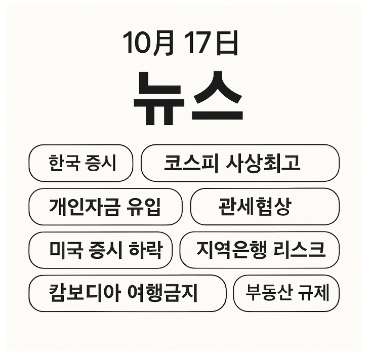 2025년 10월 17일(금) – 코스피 사상 최고·개인자금 유입, 美 지역은행 리스크 재부각
