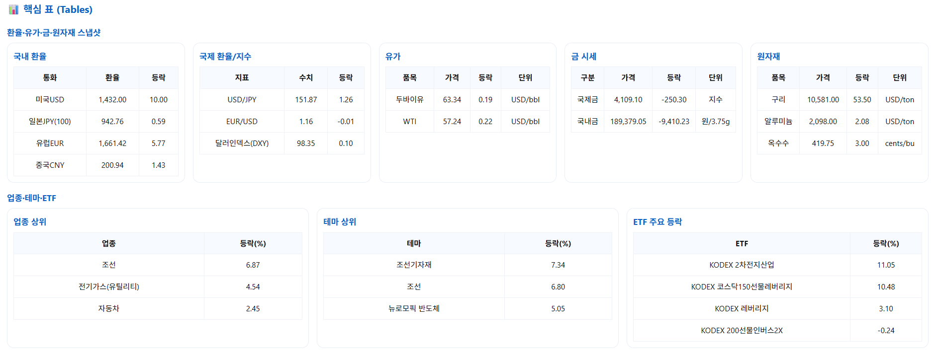 | 2025년 10월 23일(목) – AI·반도체 수요와 금 조정, 환율 1,430원대 (0) | 2025.10.23 |