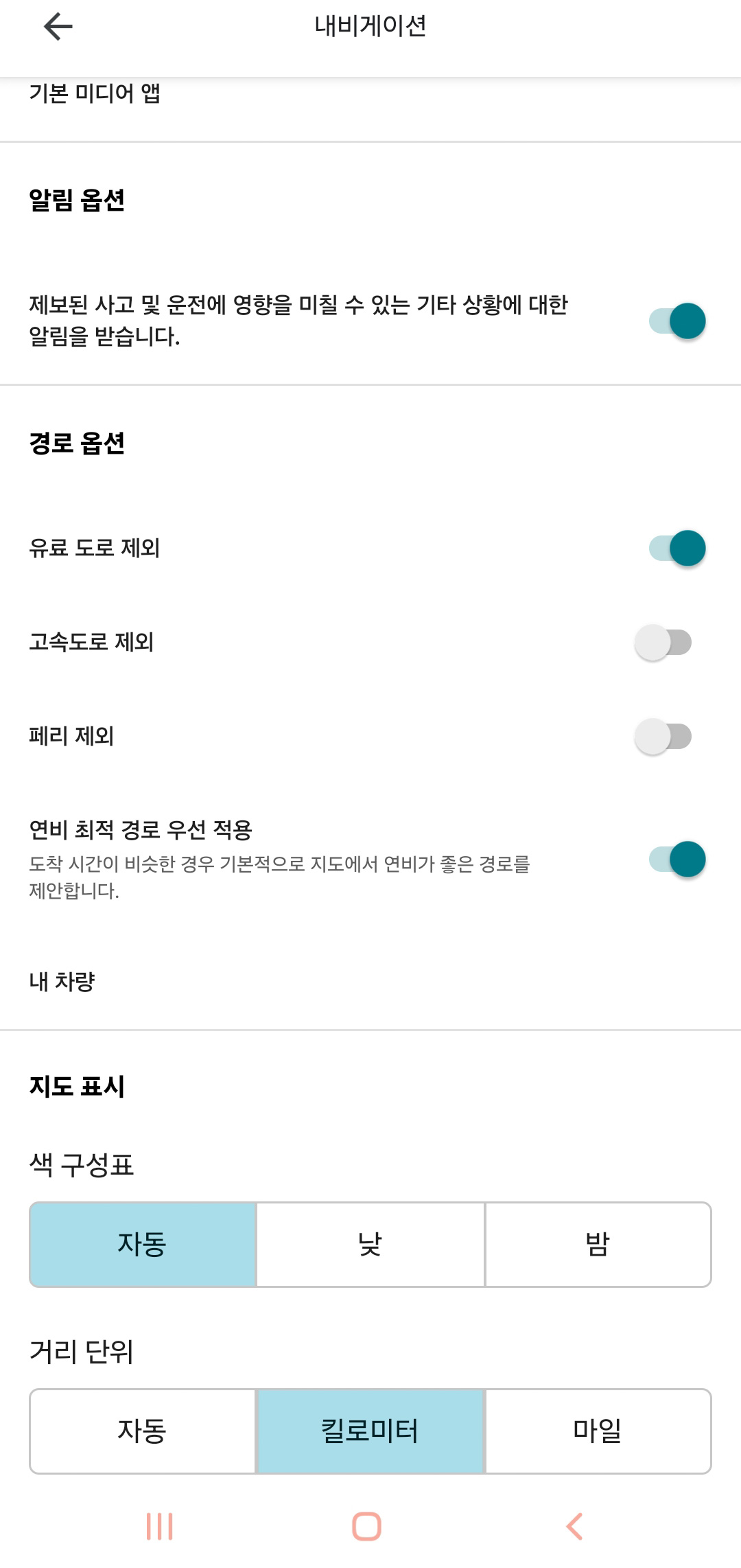 “유료 도로 제외” 만 조절하고, “고속도로 제외”는 꺼두는 경우가 대부분이다.
